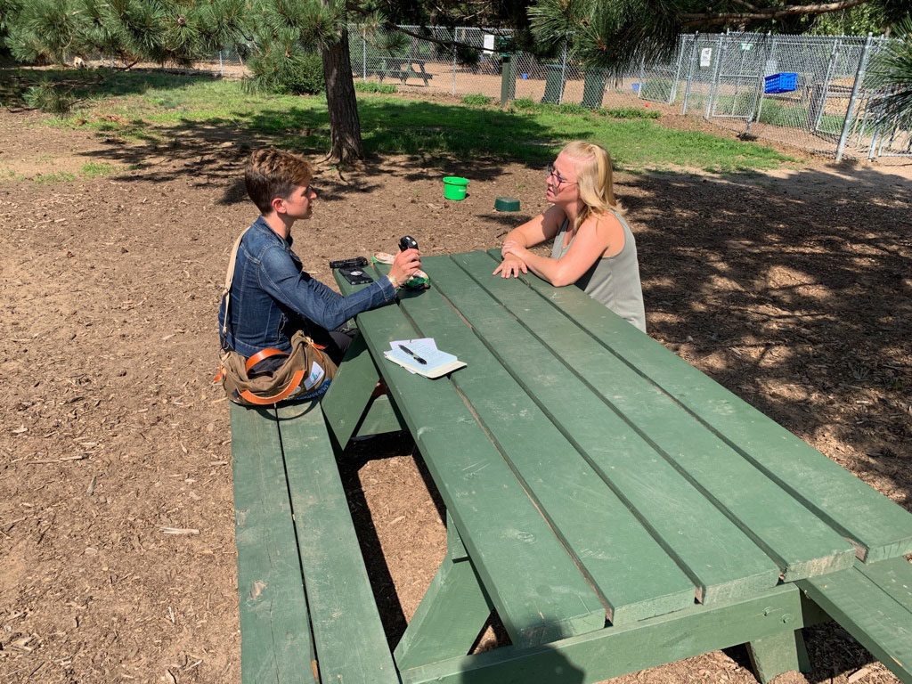 Next we met Ashley Storm (and Buster) at the dog park. She’s managing a tanning salon while looking for work as a veterinary technician. Looking for work in large animal rescue, not small animal care (sorry, Buster).