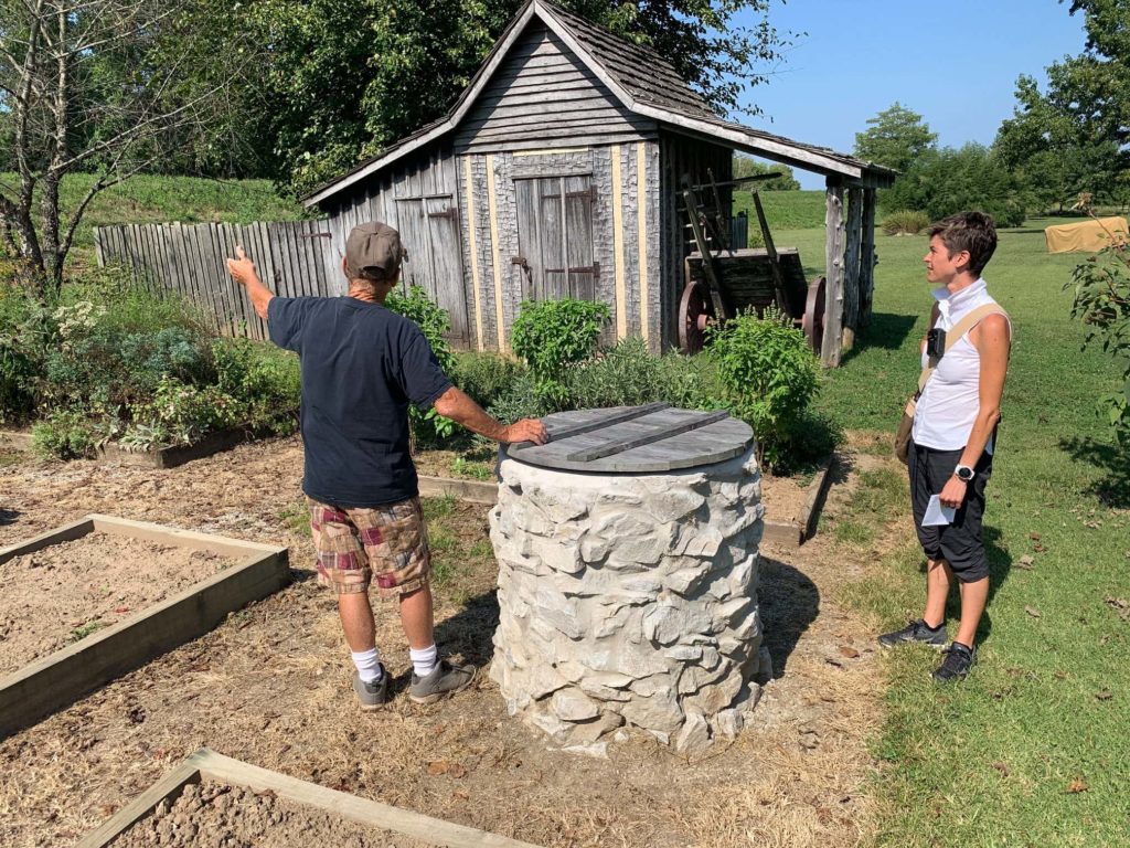 We had an appointment to meet with former site manager Darrell Duensing, but when we first arrived we ran into the new groundskeeper Tim. After a quick walkthrough of the just-rehabbed museum, Tim brought us out to the garden area that Carol cares for. A little over half planted at this stage, the garden is a bit delayed due to the seepage water flooding out the area for months this year.