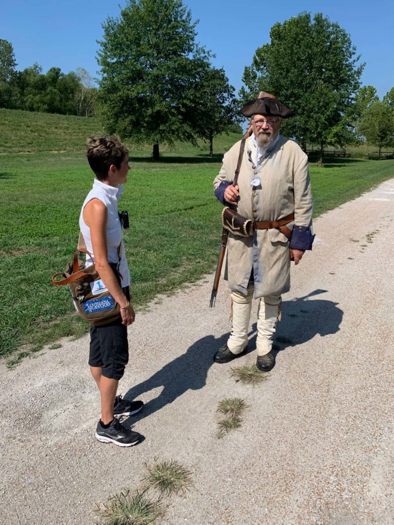 As we walked and talked with Tim, we ran into Don Martin, lead volunteer at the site, and he mentioned that Darrell was parked up the drive waiting for us. Tim drove out to let him know we were already on the grounds and bring him in. But instead of riding back in with Tim, Darrell made a grand entrance as he paraded down the path in the period costume of the French Marines, musket slung over his shoulder, and so we made our way over to meet him half way. While we did talk about the specifics of his costume and the layout of the fort itself, most interesting to me was the story of his time running the grounds and the changes that took place over the forty some odd years.