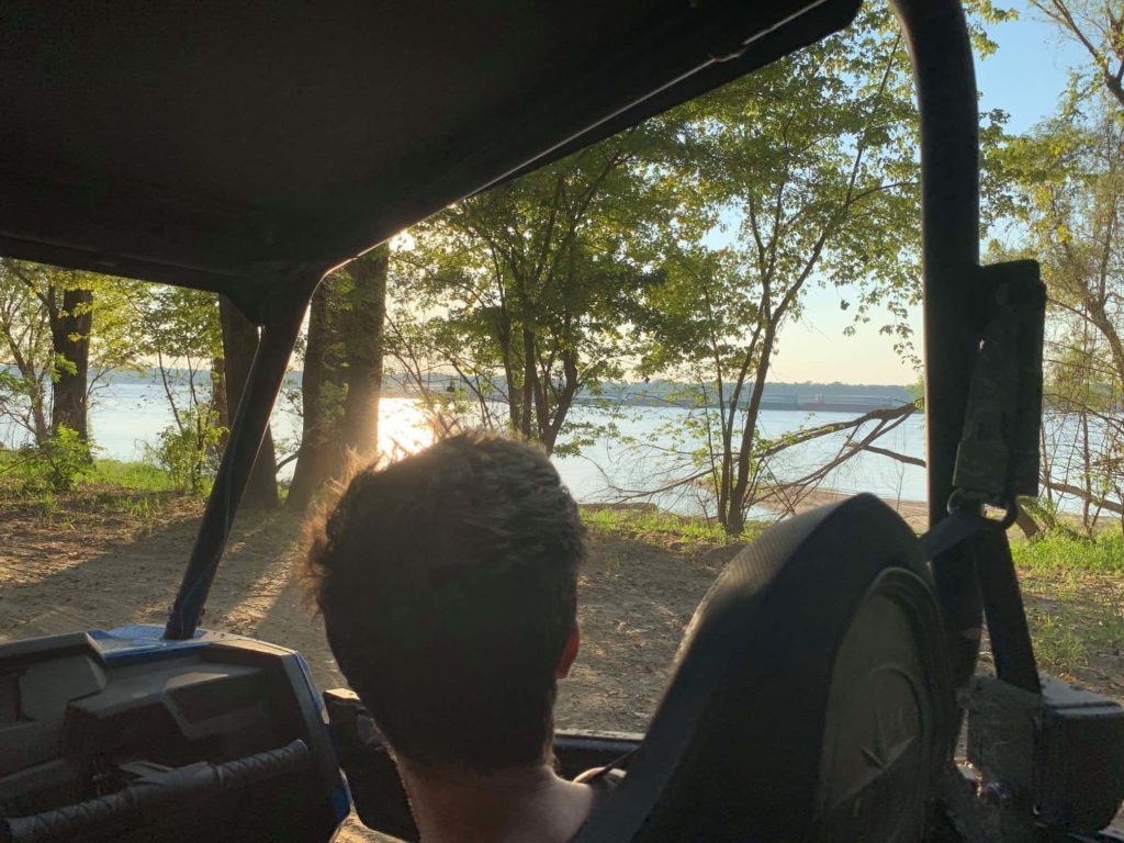 But back to the ATV trails. Dee took us out in a modern, four passenger ATV with windshield, seat belts, and hand rails. While seeming a little genteel at this point, she did keep it authentic by not cleaning or polishing the vehicle up—it was chock full of dirt and mud! Off we went down the trails cut through thick trees and brush, muddy at times, steep hills and drop offs, and on the straight aways—oh the scenery! Backwater, swampland, a paradise of hidden waterways and plant life all leading to the water’s edge at the “coast” of the Mississippi River. We were just in time to catch the sun setting. Dee and I talked readily over the growl of the ATV in the front seats, getting to know a bit more about her passions beyond lumber and mud riding, she’s also organized a dog rescue and gone back to school recently while raising some kids. Again, a raincheck here on getting to know her more and spending some quality time at Area 252.