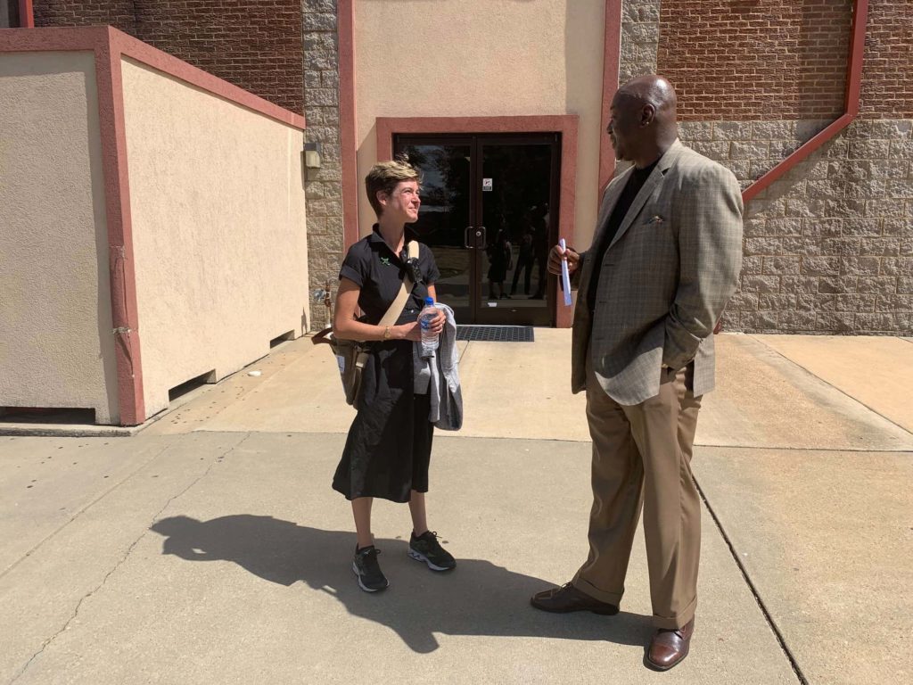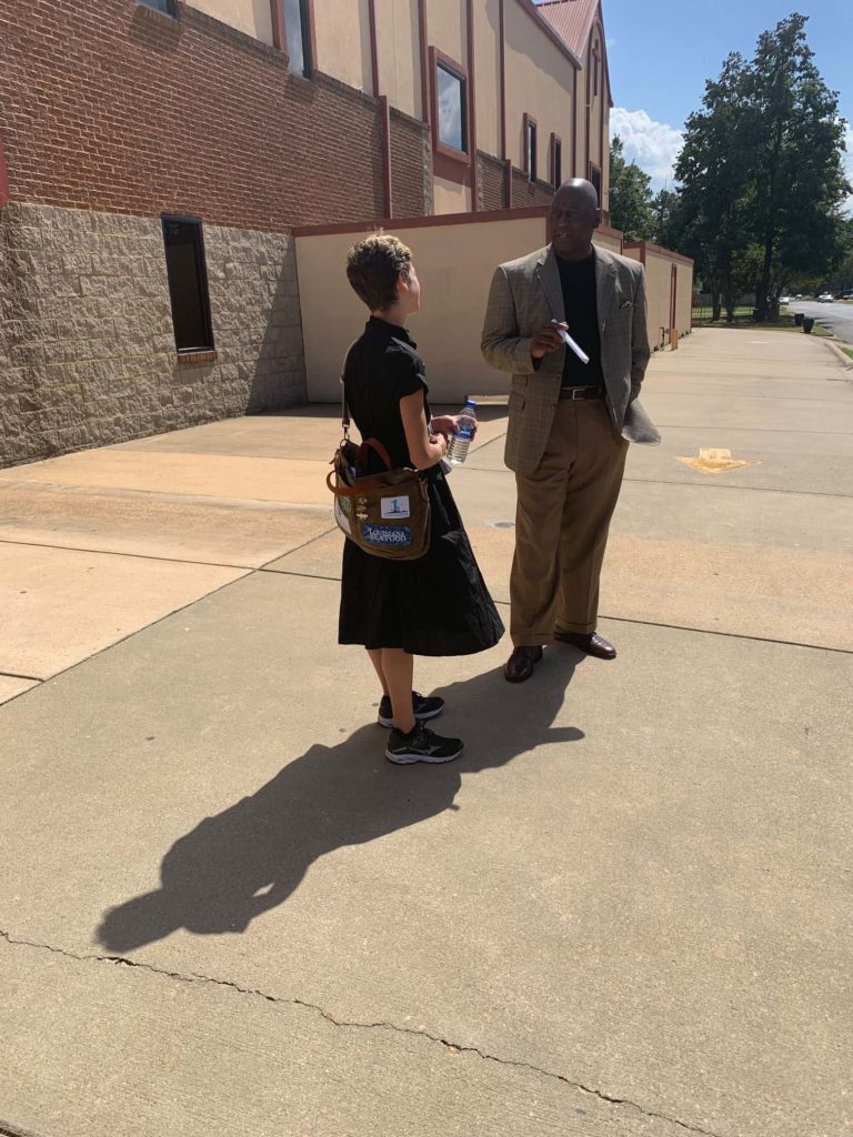 Anyhow, time to head to church! West Memphis, Arkansas has its own identity and we’re spending two days here to discover it all. As we turned down 8th street to find the church where we’d meet our host Fred Leonard, we saw several churches—not that church, not that church, nope not that church—there it is, the oldest congregation we’ve been told, Old Saint Paul Missionary Baptist Church. The parking lot and street side were already full of cars and congregants, so we pulled down the block to make a quick change out of our sweaty running gear, buying as much privacy as possible. Our version of “Sunday best” paled in comparison to the fancy hats, suit jackets, and polished shoes that were making their way into the sanctuary, but we tried.