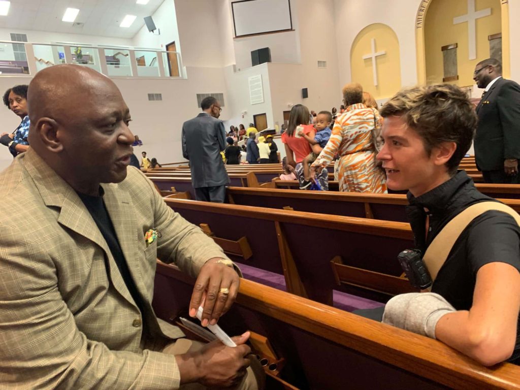 Our conversation got waylaid for a moment, when Fred saw an opportunity to introduce us to Pastor Frederick Anthony… There was a lot said, but a few key thoughts from the Pastor, especially about the worship that day, is that “they call us baptist, but we are really just bible believing people.” He says, “I don’t like to just make people say “hallelujah” … if you don’t want to say it, you don’t have to say it, you know what I’m sayin? But don’t try to stop me from sayin it, don’t try to judge me cause I do say it. You see…. god is the same god, but he may be a little bit different to me…”