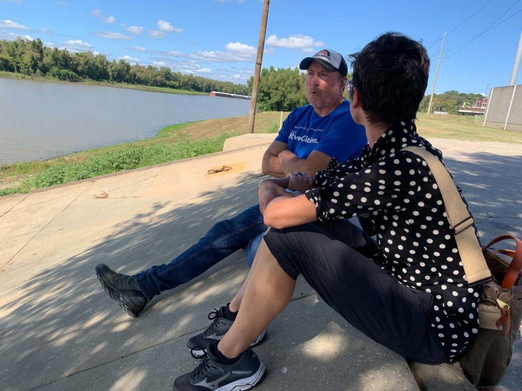 Layne found kayaking about 8 years ago, and soon after discovered John Ruskey, the man who founded Quapaw. The river is ever changing, says Layne, and he and John’s goals are aligned in terms of introducing people to the river. If you do that, he says, they’ll want to protect the river. His first encounter with John happened on the Mississippi when John was making a trip down toward Vicksburg in a Lewis and Clark voyageur canoe, so Layne decided to paddle out to meet them as they came in—the welcoming committee! At this point, Layne’s kayaked 310 miles of the Mississippi River from St. Louis to Caruthersville. He’s done 210 miles from Vicksburg to Baton Rouge—it took 9 days. He’s also been a River Angel since 2014, providing aid to other people who are paddling down the river. He talked about a love/hate relationship with towboats and barge operations. Layne says that the greatest salute is the captain coming out to wave his hat at a paddler.