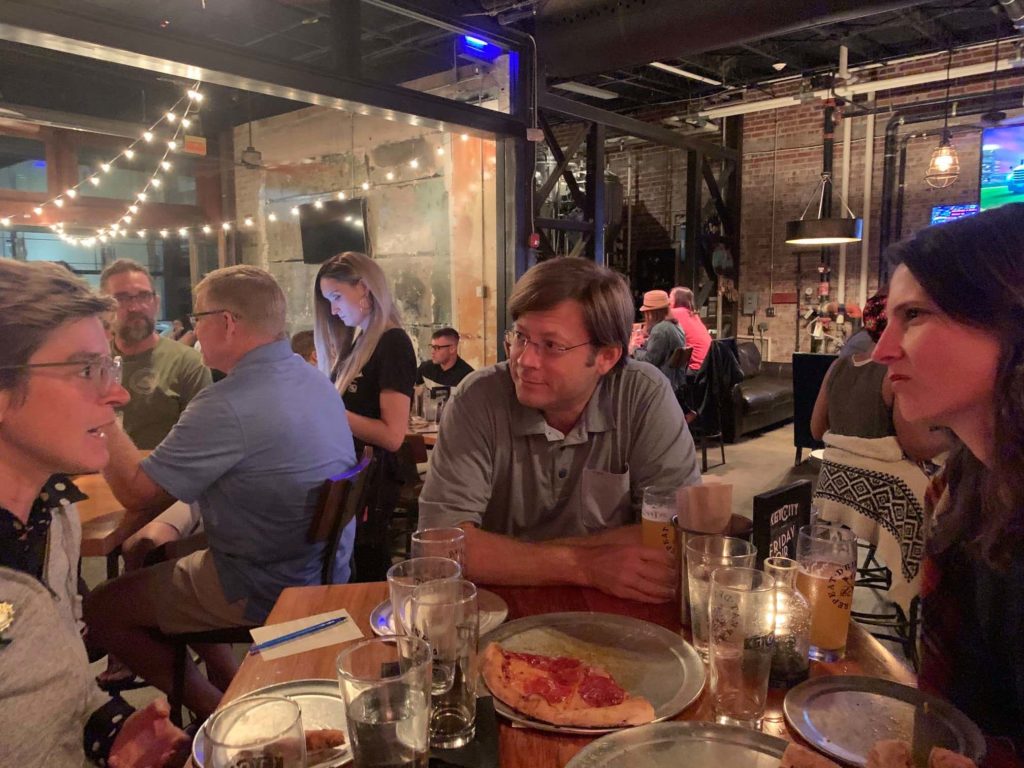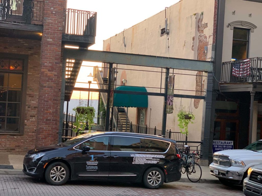 After leaving Layne, we headed over to The Duff Green Mansion, our lodging for the night thanks to Visit Vicksburg. As soon as we dropped our bags in the Pemberton suite, we stepped back out to the van to work on my flat tire. Miraculously, the new tube went on and tire fitted round in record time—either we’re getting good at this or it was just luck of the draw! We decided to head down to the Cottonwood Public House in anticipation of our dinner with Patrick Smith of Yazoo River Towing, Inc. and get about an hour’s work done on the laptops before Patrick’s arrival.