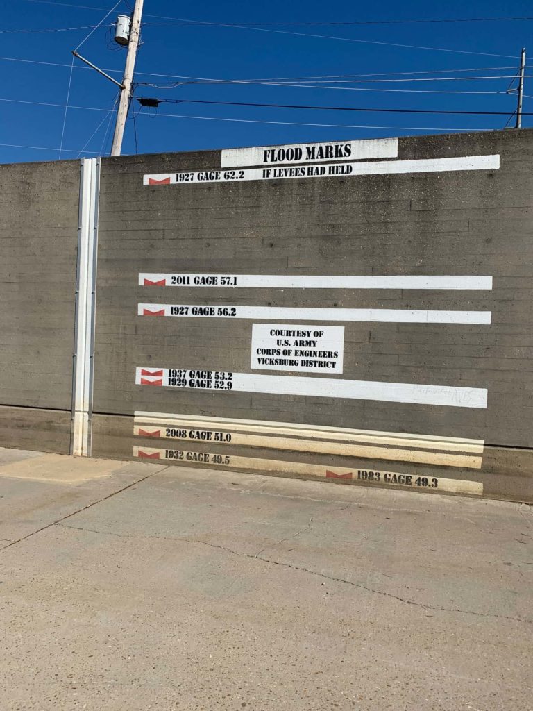 The two of them traversed the long crossing—over the vast wooded floodplain on the Louisiana side, to the wide main channel of the Mississippi, to the high bluffs of Vicksburg. Conversation began with the history of this historic crossing. It was built in 1930 and carries both railroad and highway traffic in a side-by-side arrangement. It’s closed now (since 1998) and traffic is routed to the newer I-20 bridge just downstream. Today, this passage along the Mississippi River is one of the most difficult to navigate for towboat operators. This was confirmed by the sunken barge that Herman pointed out, waiting to be retrieved when river conditions improve. Herman and his commission are working to get the bridge opened to pedestrian and bicycle use—a process that is complicated by the active Kansas City Southern railroad line. In the meantime, the bridge is opened for the 31st Annual Over the River Run each year – an event we’d like to attend on a future trip along the river…